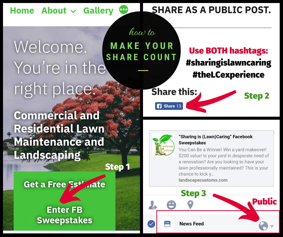 STEP THREE: Share to Facebook using BOTH the hashtags #sharingislawncaring AND #theLCexperience